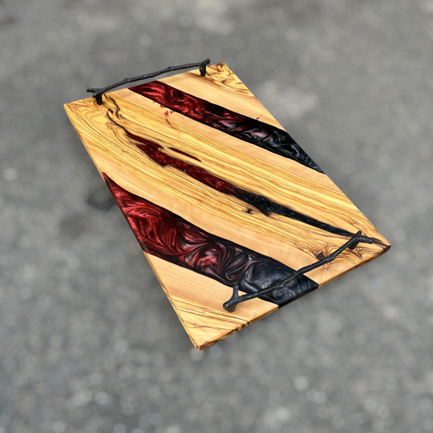Introducing our Personalized Epoxy Resin and Olive Wood Charcuterie Board, a unique and handcrafted addition to your culinary collection. Meticulously crafted by skilled artisans, this exquisite board combines premium resin with the distinctive texture of olive wood, resulting in a stunning masterpiece that enhances any occasion.