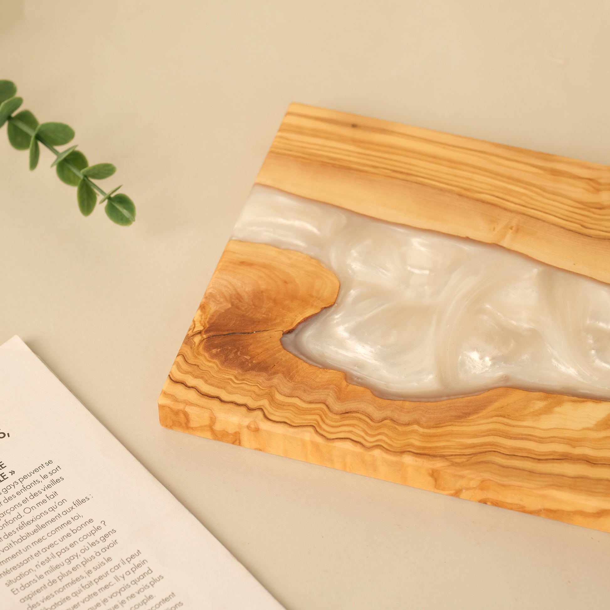 Handmade Olive Wood Resin Charcuterie Board: Personalized River Cheese Board
