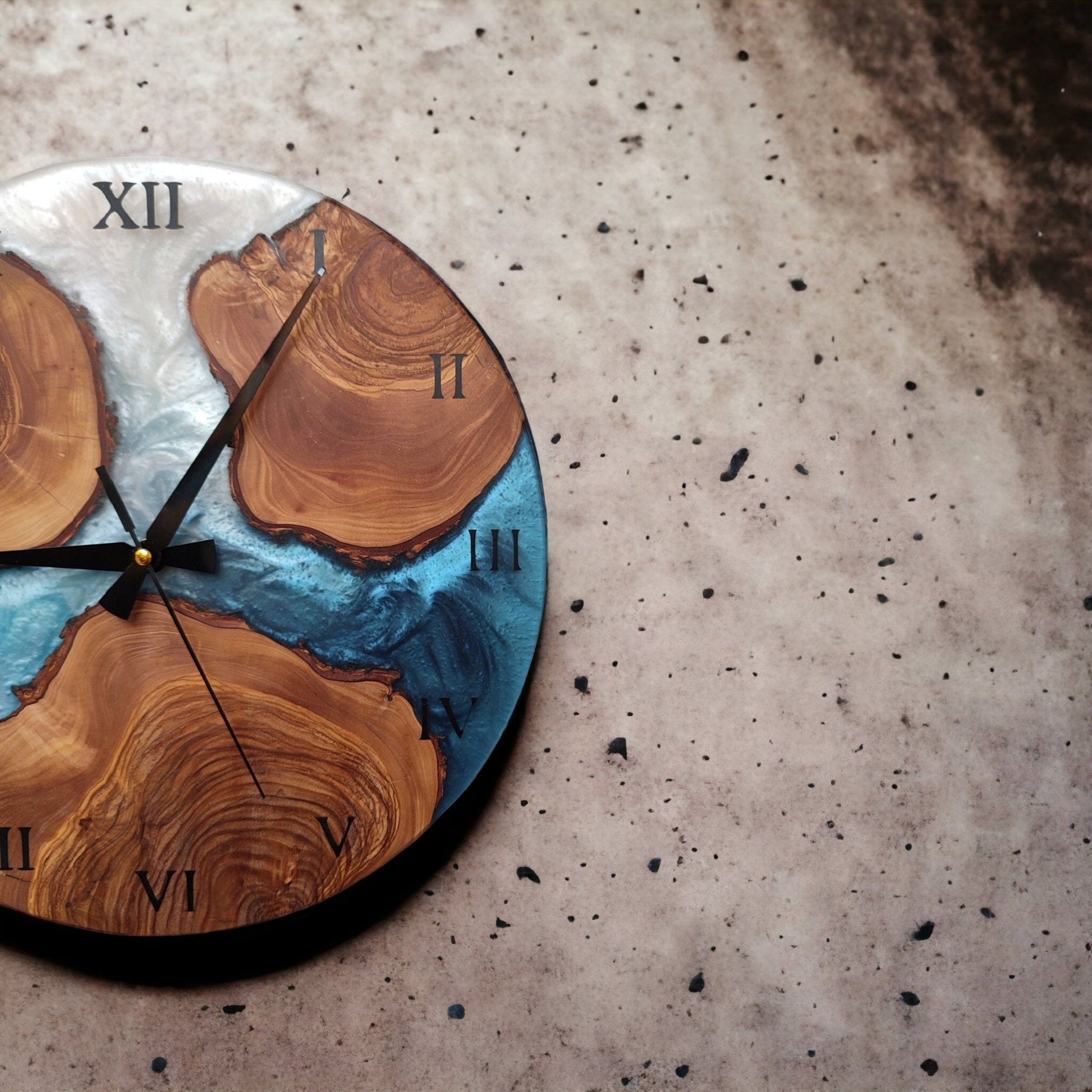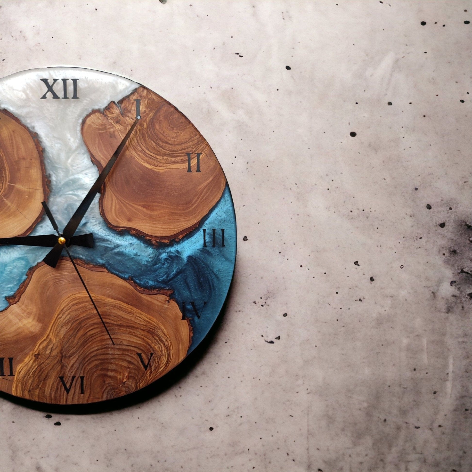 Upgrade your home decor with our unique Resin and Olive Wood Clock that adds a personal touch to any space. Order yours today and enjoy fast shipping from our small business in Turkey!