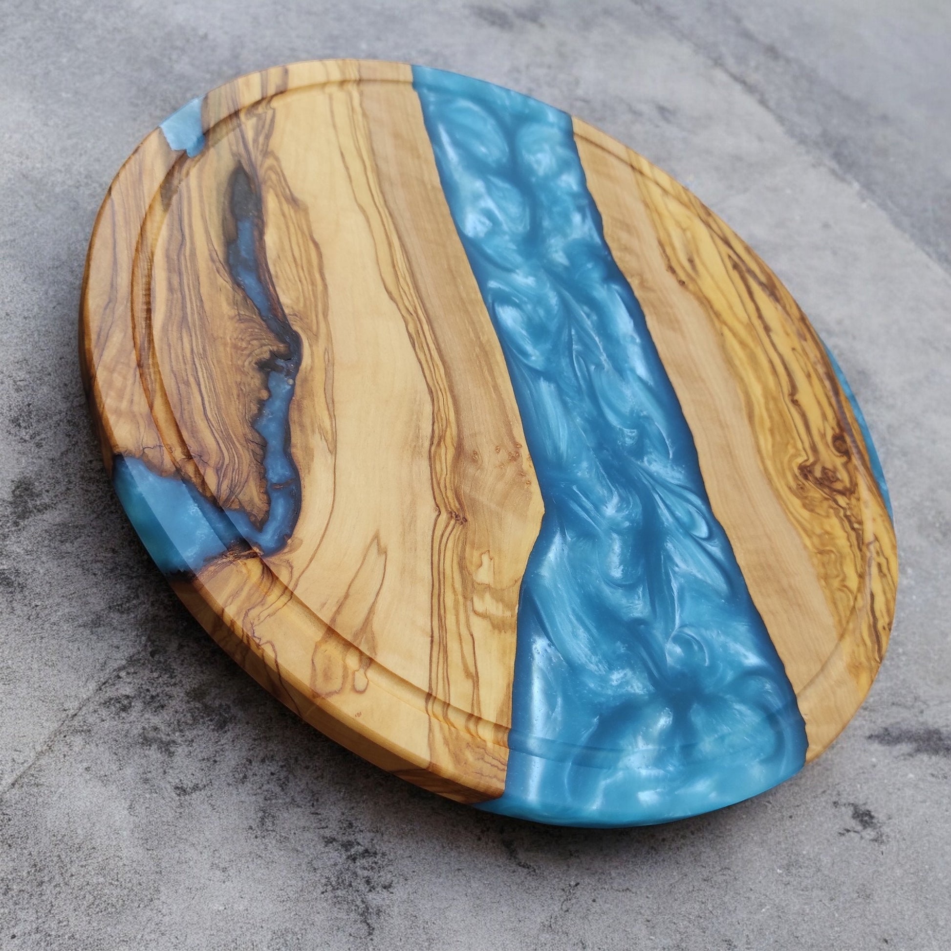 Resin River Charcuterie Board: Olive Wood Cheese Board